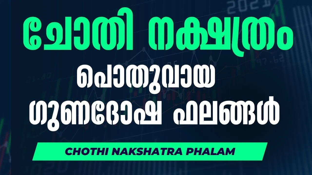 ചോതി നക്ഷത്രത്തില് ജനിച്ചവര്ക്ക് ചോറിന് മുട്ടുവരികയില്ല.എന്നൊരു ചൊല്ലുണ്ട് ഇവർക്ക് അസാമാന്യ സാമര്ത്ഥ്യം ഉണ്ടായിരിക്കും .ഇവർ പൊതുവെ ശാന്തശീലരാണ്. കുറെ നിർബശീലം ചോതി നക്ഷത്രജാതർക്കുണ്ട്.മധുരമായി സംസാരിക്കുവാനും ആത്മനിയന്ത്രണത്തോടെ പെരുമാറുവാന് കഴിവുള്ളവനായിരിക്കും ബുദ്ധിയും പ്രായോഗികശീലവും കാണുന്നു.നിസ്സാര കാര്യങ്ങൾക്കുപോലും പിണക്കം ഭാവിക്കുന്ന സ്വഭാവമുണ്ടായിരിക്കും. സ്വന്തം പ്രയഗ്നം കൊണ്ട് പുരോഗതി നേടും .സഹായമഭ്യര്ത്ഥിക്കുന്ന ആരേയും സഹതാപത്തോടെ അഭിമുഖീകരിക്കും എന്നാൽ നല്ല സുഹൃത്തുക്കളേയും കപടനാട്യക്കാരേയും തിരിച്ചറിയാനുള്ള കഴിവ് ഇവർക്കുണ്ട് .